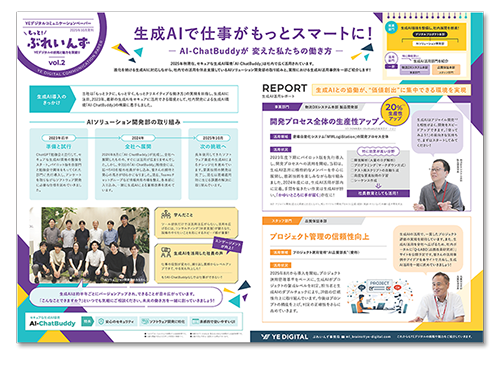 YEデジタルの挑戦や魅力を深く掘り下げた情報をお届けする社内報『もっと!ぶれいんず』を公開しています。