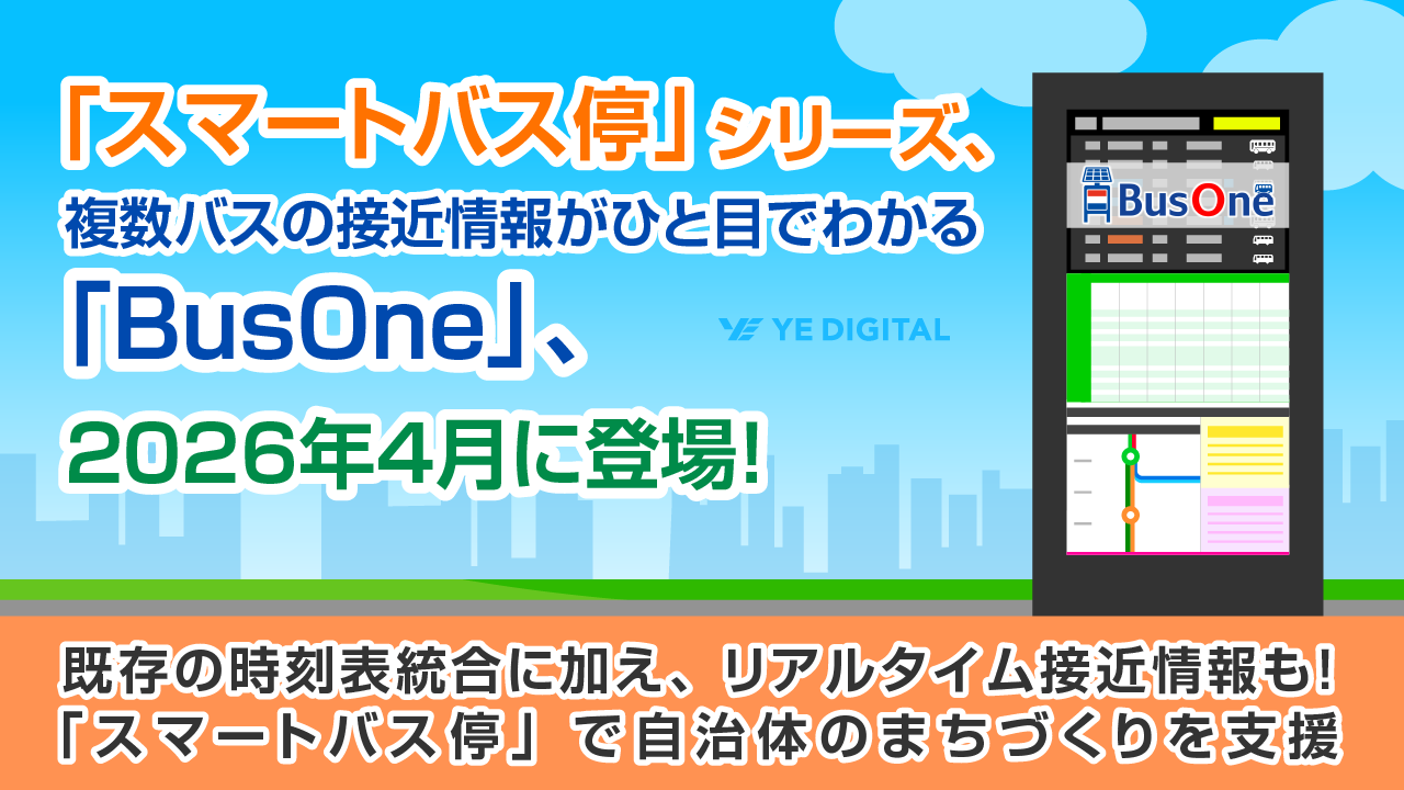 株式会社YE DIGITAL(本社:北九州市小倉北区、代表取締役社長:玉井裕治、以下、YEデジタル)は、この度、複数のバス事業者からのバスロケーションデータを収集・統合し、表示を可能にするバス接近情報統合システム「BusOne(バスワン)」の開発に着手しました。2026年4月の提供を予定しています。