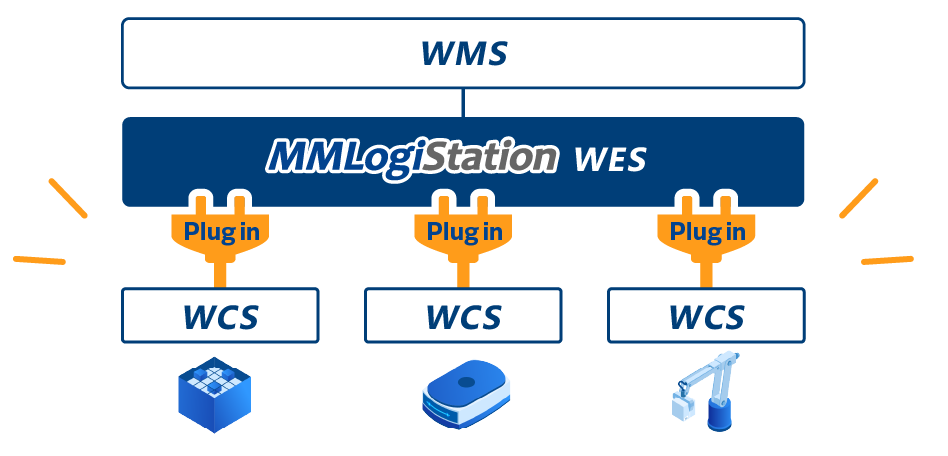 YEデジタルのWES「MMLogiStation」は、主要メーカーの自動化設備とのインターフェースをプラグインとして標準搭載しており、迅速な導入が可能です。複数メーカーの自動化設備を統合的に制御できる点も大きな特長です。